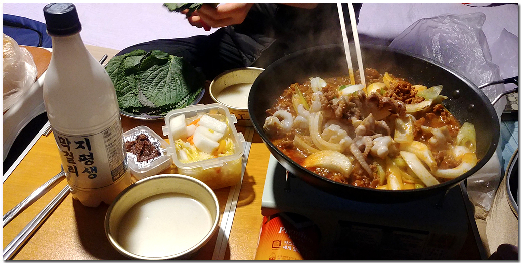 # 저녁에는 불고기와 주꾸미의 조합으로 만찬을 즐겼다. 오랜만에 막걸리 맛나게 마셨다.